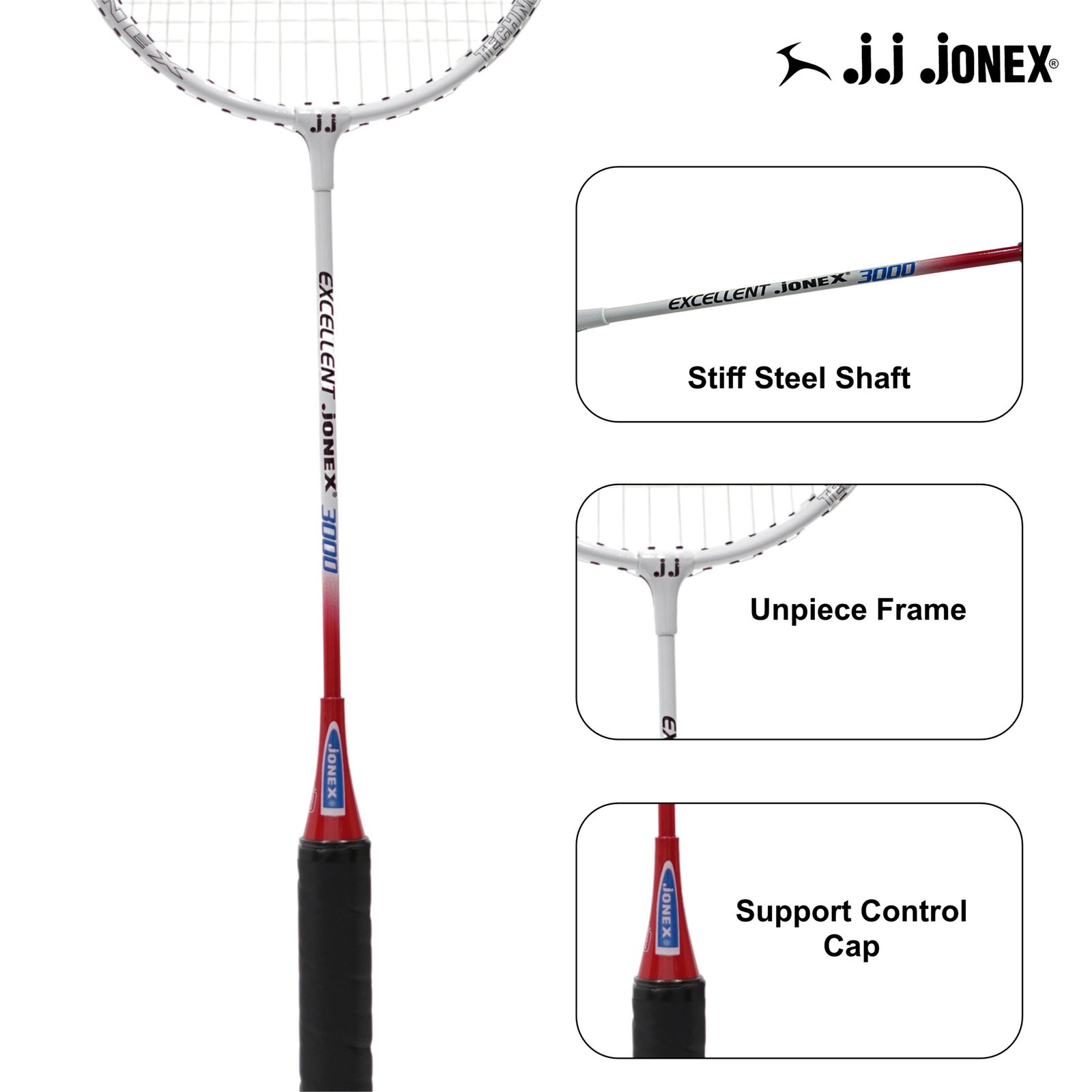 JJ Jonex Excellent 3000 Badminton Racket is a masterpiece crafted to elevate your game to new heights. Designed with cutting-edge technology and premium materials, this racket is your ultimate partner in conquering the badminton court with finesse and power. Whether you are a beginner looking to improve your game or an advanced player seeking that extra competitive edge, the Badminton Racket is the perfect choice. Experience the thrill of victory with every shot as you wield this cutting-edge racket, making it an indispensable part of your badminton journey.