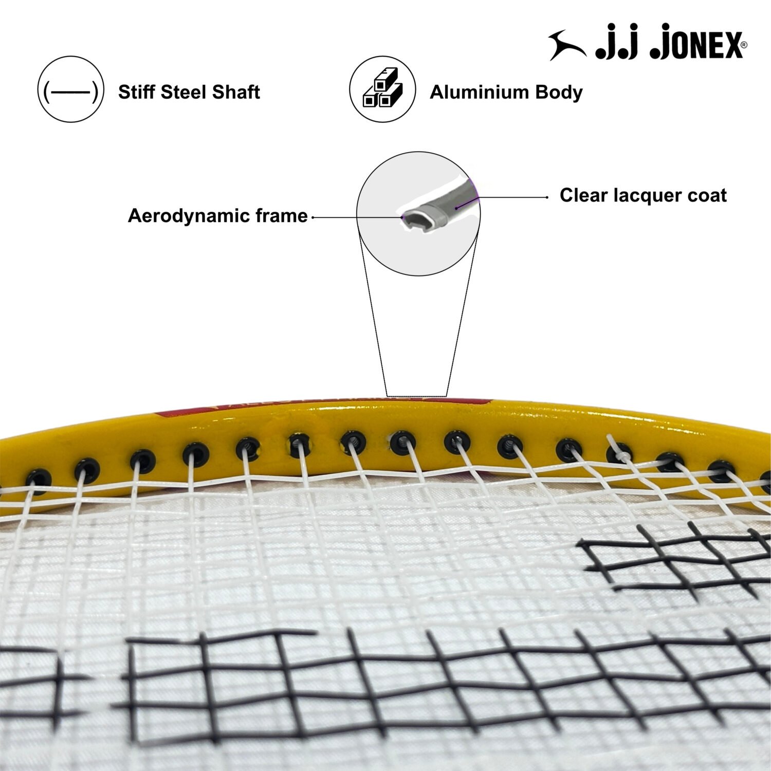 The Jonex SR 646 Racket is designed for players who seek lightweight agility, durability, and precision. Constructed with a strong aluminium alloy frame, this racket ensures consistent performance and control during fast-paced rallies. Weighing 200 g ±(5), it provides a perfect balance of maneuverability and power. The string tension of 40–45 lbs allows for responsive shots and accurate placement, while the PU handle ensures a comfortable, non-slip grip for extended gameplay.